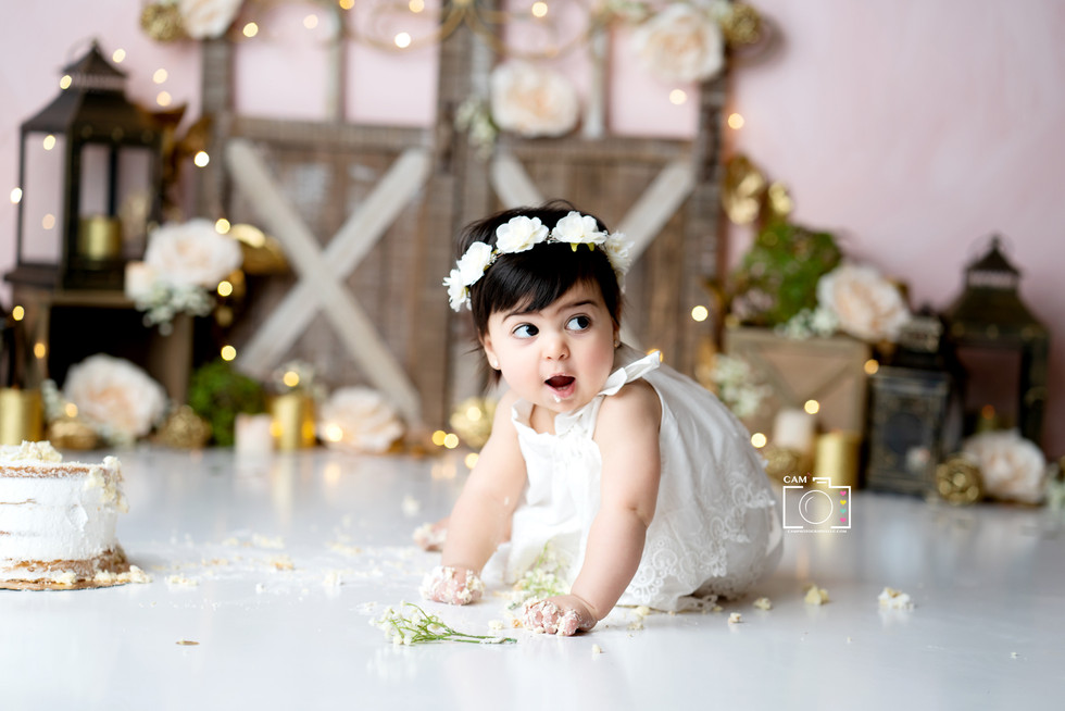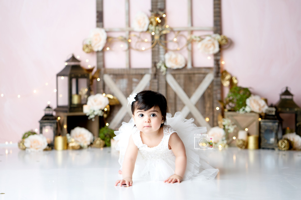 After designing Melina's smash session and seeing her in her outfit, all I could think of was these photos will be perfect to display at her bridal shower one day or at her wedding. From this sweet little dress to her beautiful gown, Mom and Dad will always know she's their angel.