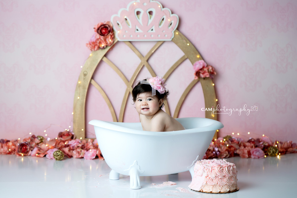 To be a princess is every little girls dream, and sometimes a Mom's dream for their little highness. Kenzie will go down in history as the Princess who LOVED her smash cake. Even when it was time to splash after the smash, she still wanted to get a taste of the icing. Her smile will always light up a room and I know she will live happily ever after.